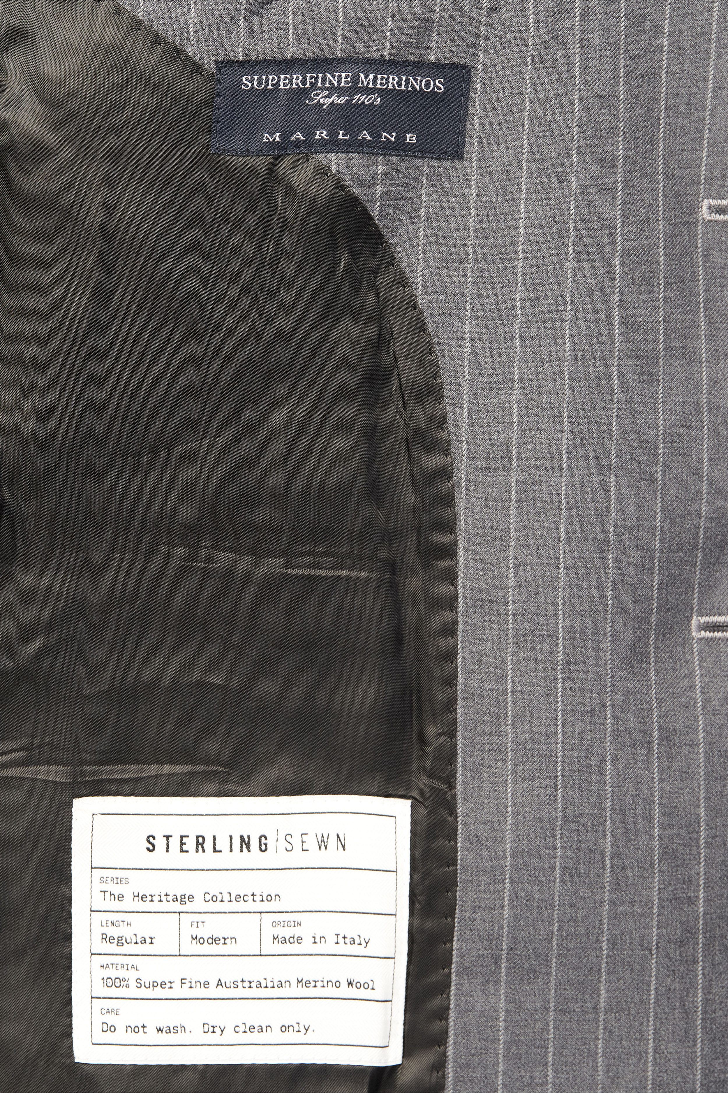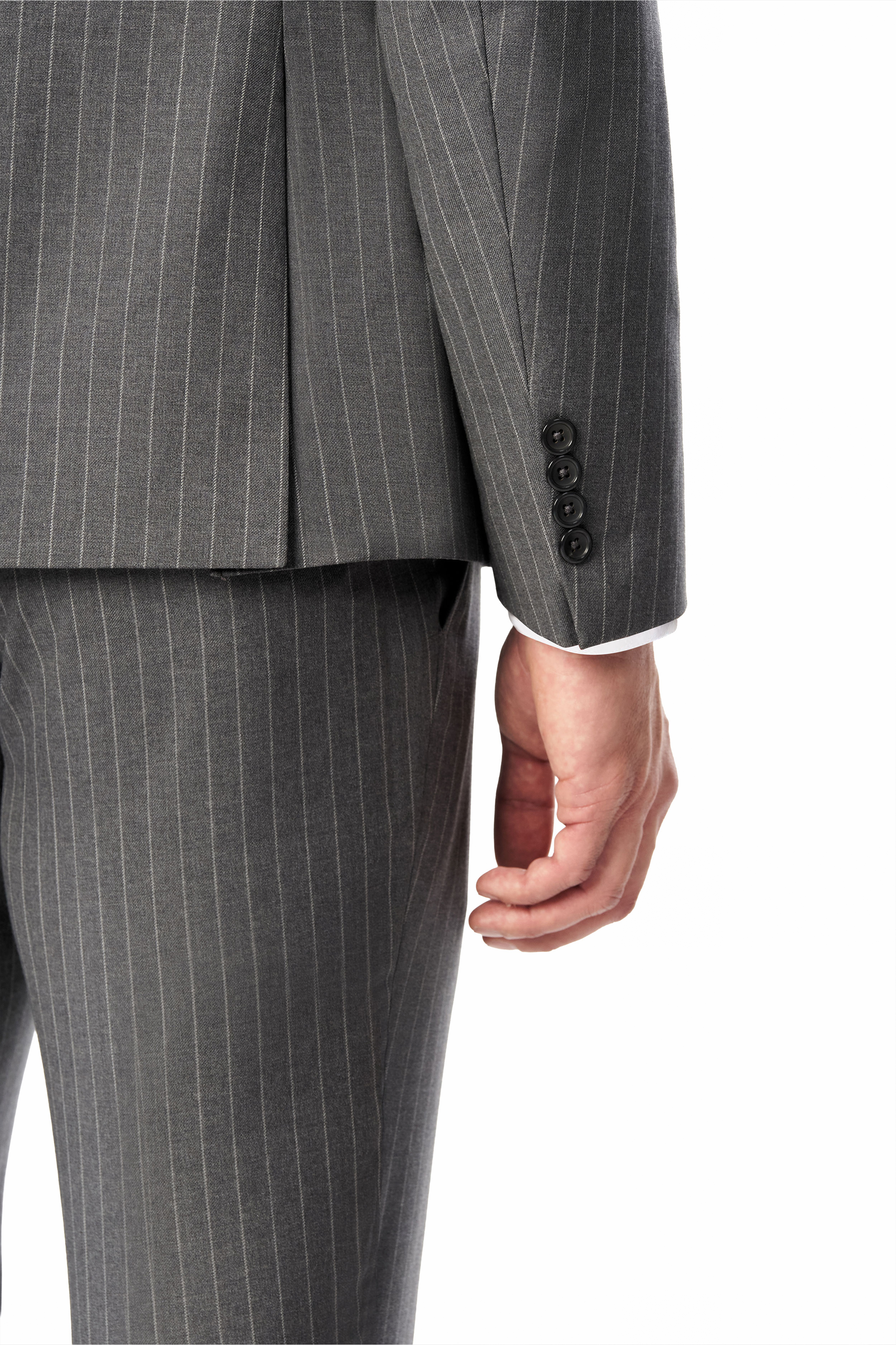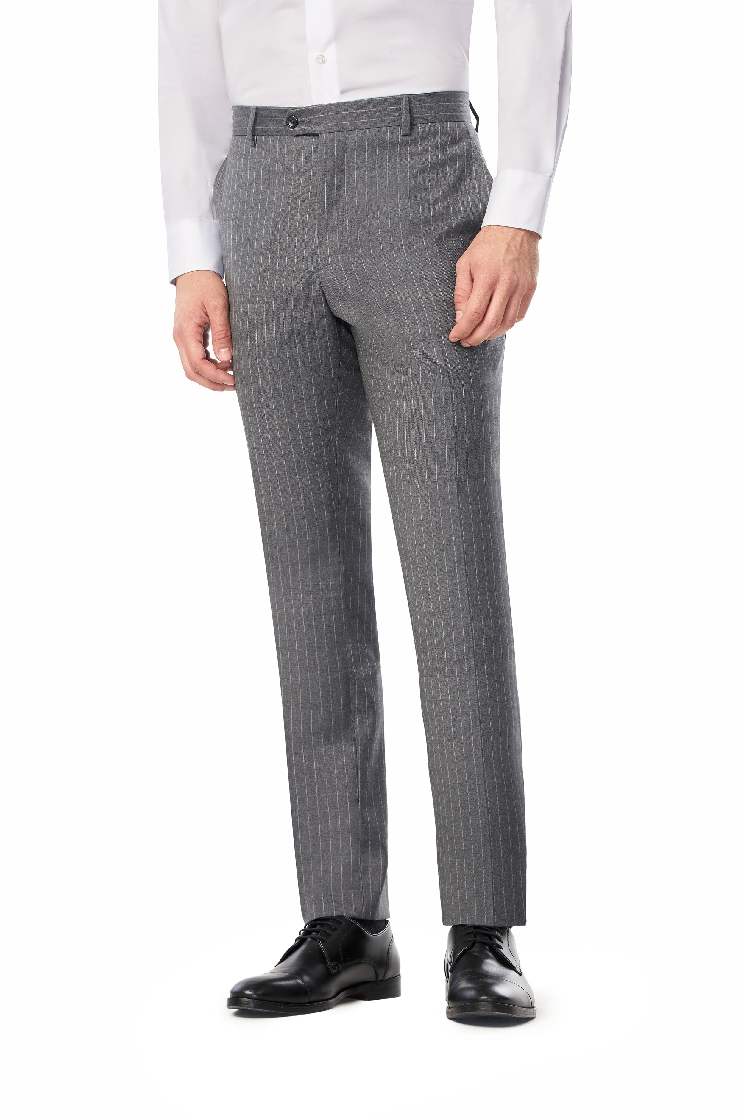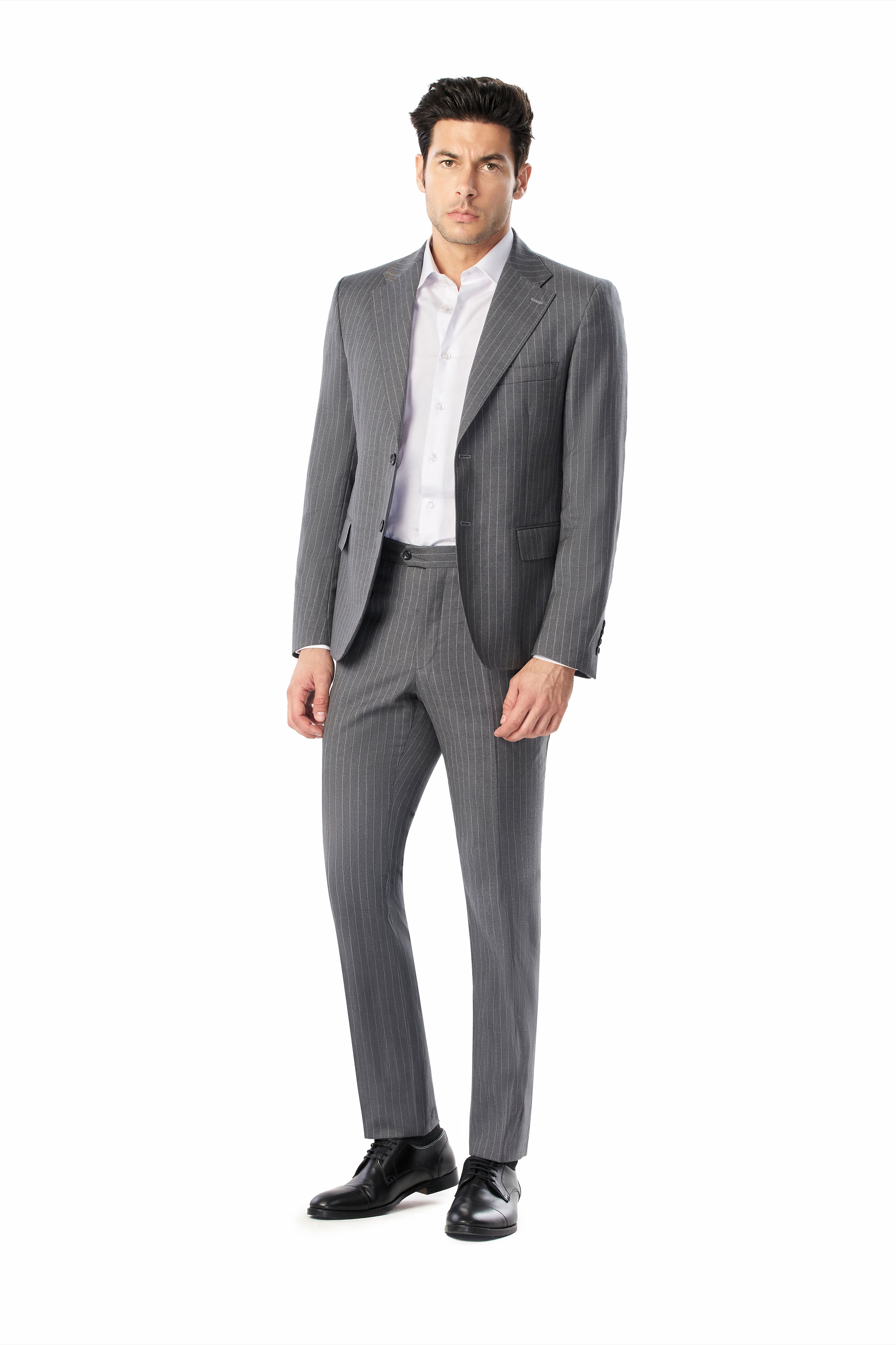 With its refined gray pinstripe design, 100% Italian wool construction, 1/2 canvas lining, and masterful Italian craftsmanship, this suit from The Heritage Collection is the epitome of timeless elegance. The two-button jacket, notch lapel, and slim fit create a commanding yet approachable silhouette. For the modern gentleman seeking to make a sophisticated statement, this Classic Gray Pinstripe suit is an impeccable choice.