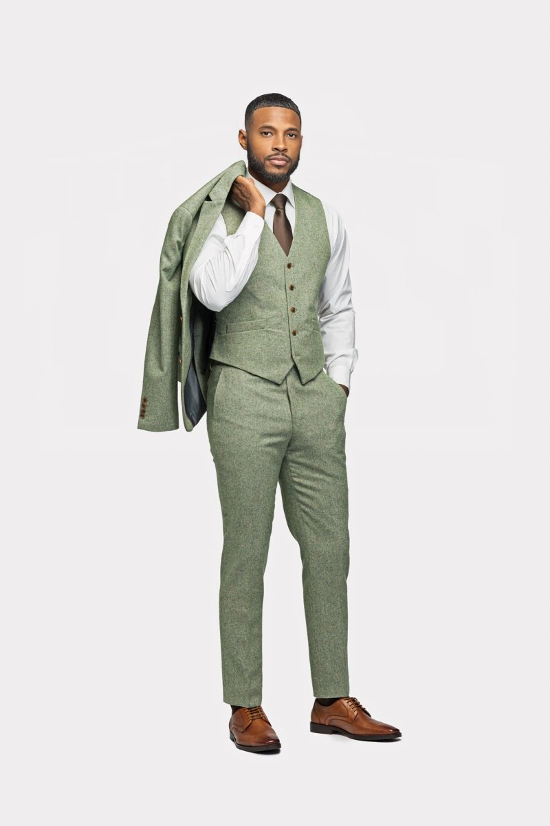 Light Green Tweed 3 Piece Suit