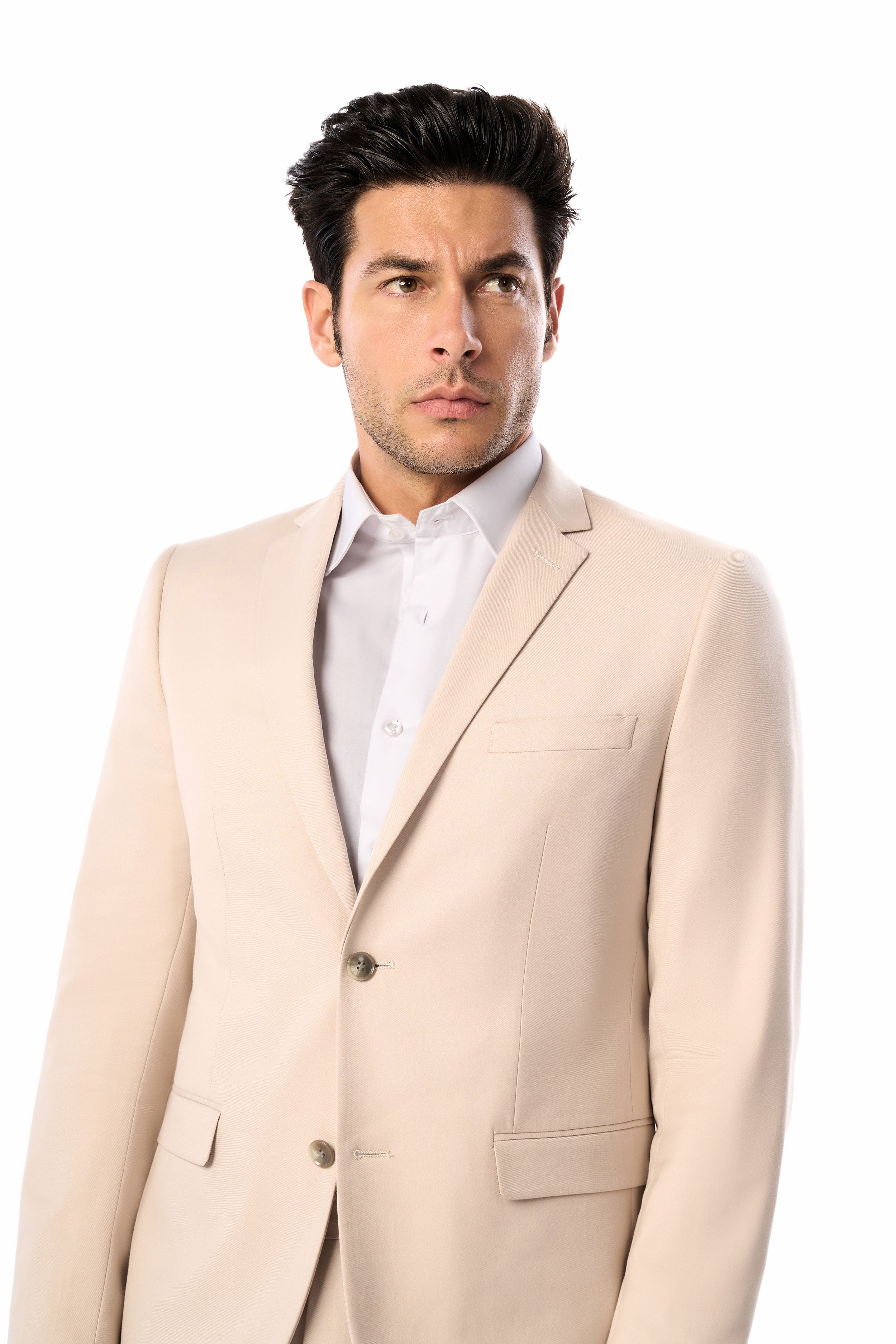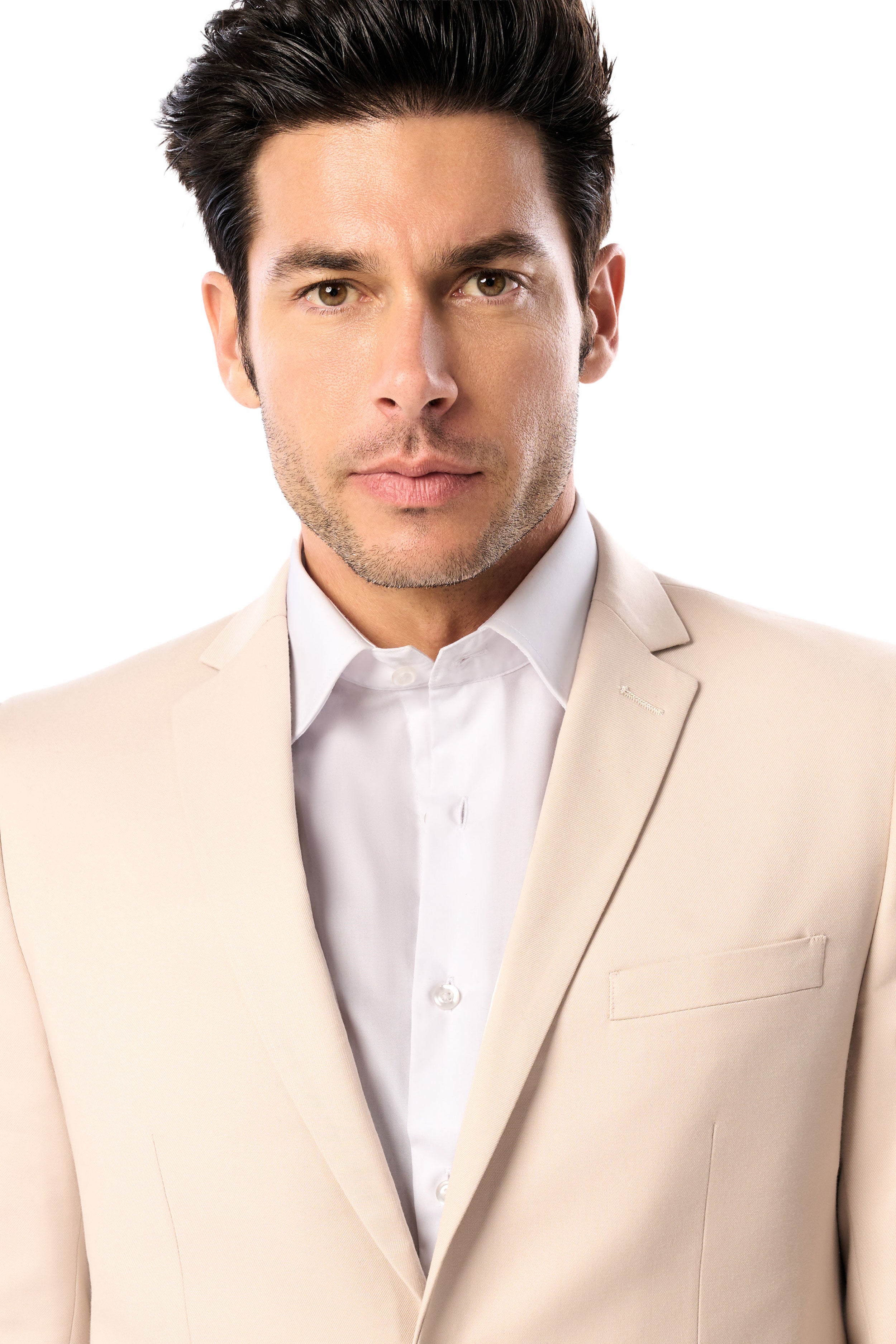 This classic tan suit transitions seamlessly from summer weddings to the office. For warm-weather events, complement it with light tones and fabrics like a linen shirt and linen pocket square. For professional settings, pair it with a crisp white shirt, navy tie, and oxford shoes. The tan color makes an instant statement that will help you look sharp and stunning.