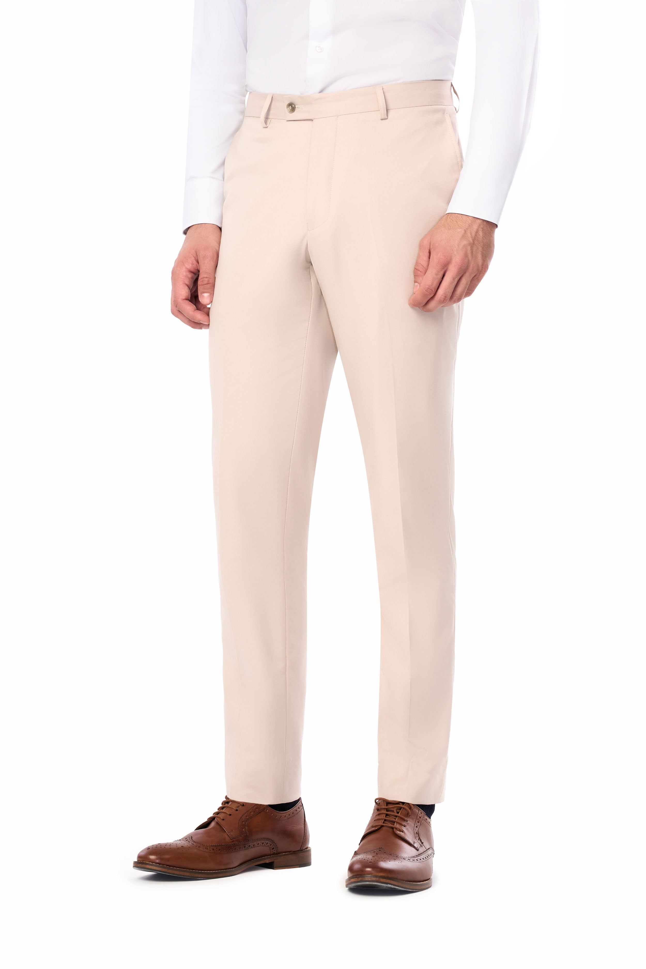 Skillfully woven from a comfortable polyester/rayon blend, the fabric is smooth and soft to the touch. Also, the lightweight, breathable fabric maintains a contoured, tailored shape while allowing ease of movement. The material resists wrinkles and creases elegantly. The versatile tan hue pairs effortlessly with any color palette.