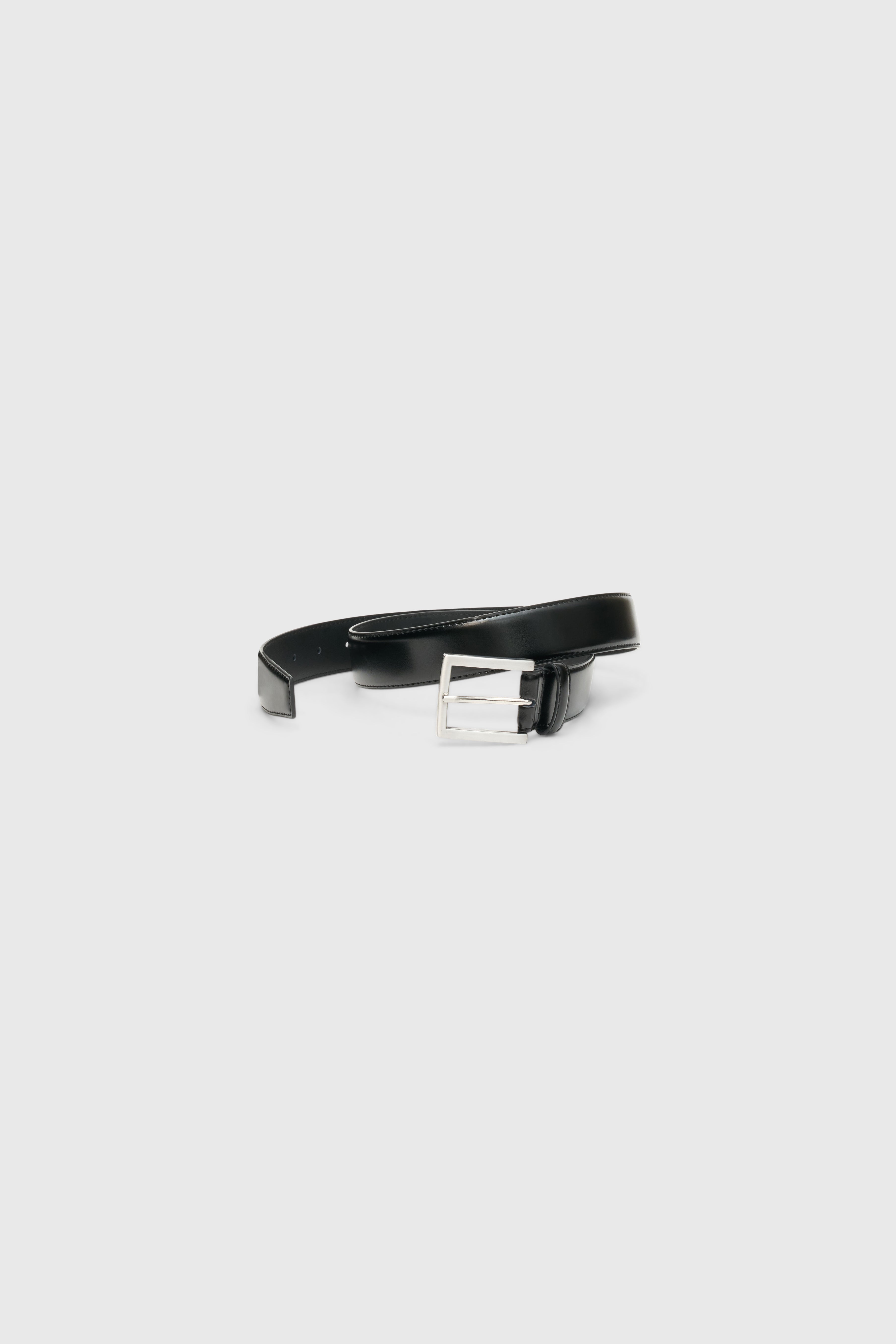 Sharpen any suit with the Black Leather Dress Belt—polished leather in deep, glossy black, cut clean and slim for seamless tuck-under. Brushed silver buckle keeps it understated yet refined. Timeless essential for boardroom or black-tie. Sleek. Silent. Sophisticated.