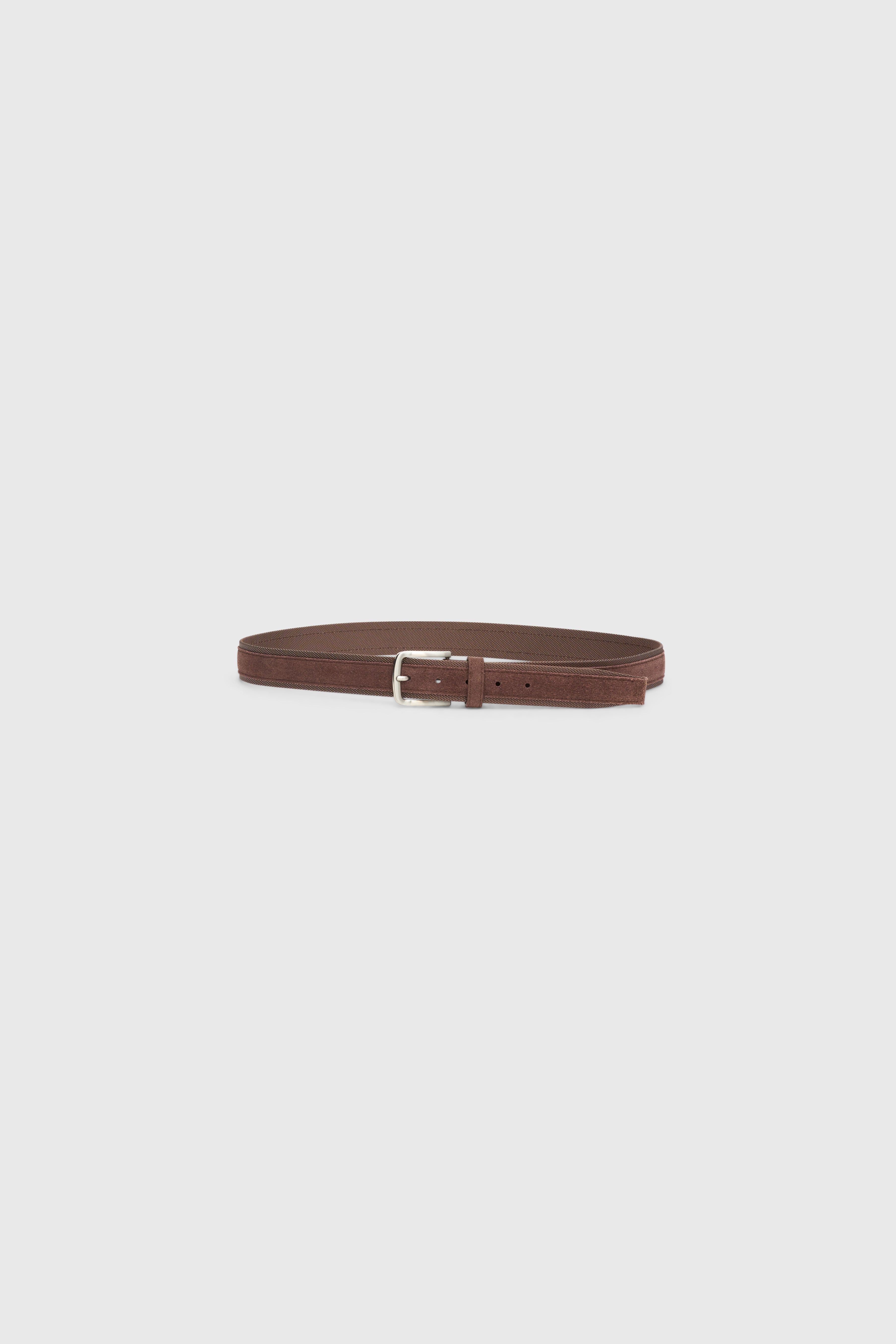 Luxurious Italian suede meets durable woven fabric in rich, earthy brown. Soft, water-resistant suede center with breathable fabric sides and an antique brass buckle for timeless style. Perfect for casual weekends or polished office days. Versatile, comfortable, built to last. Add refined detail to any outfit.