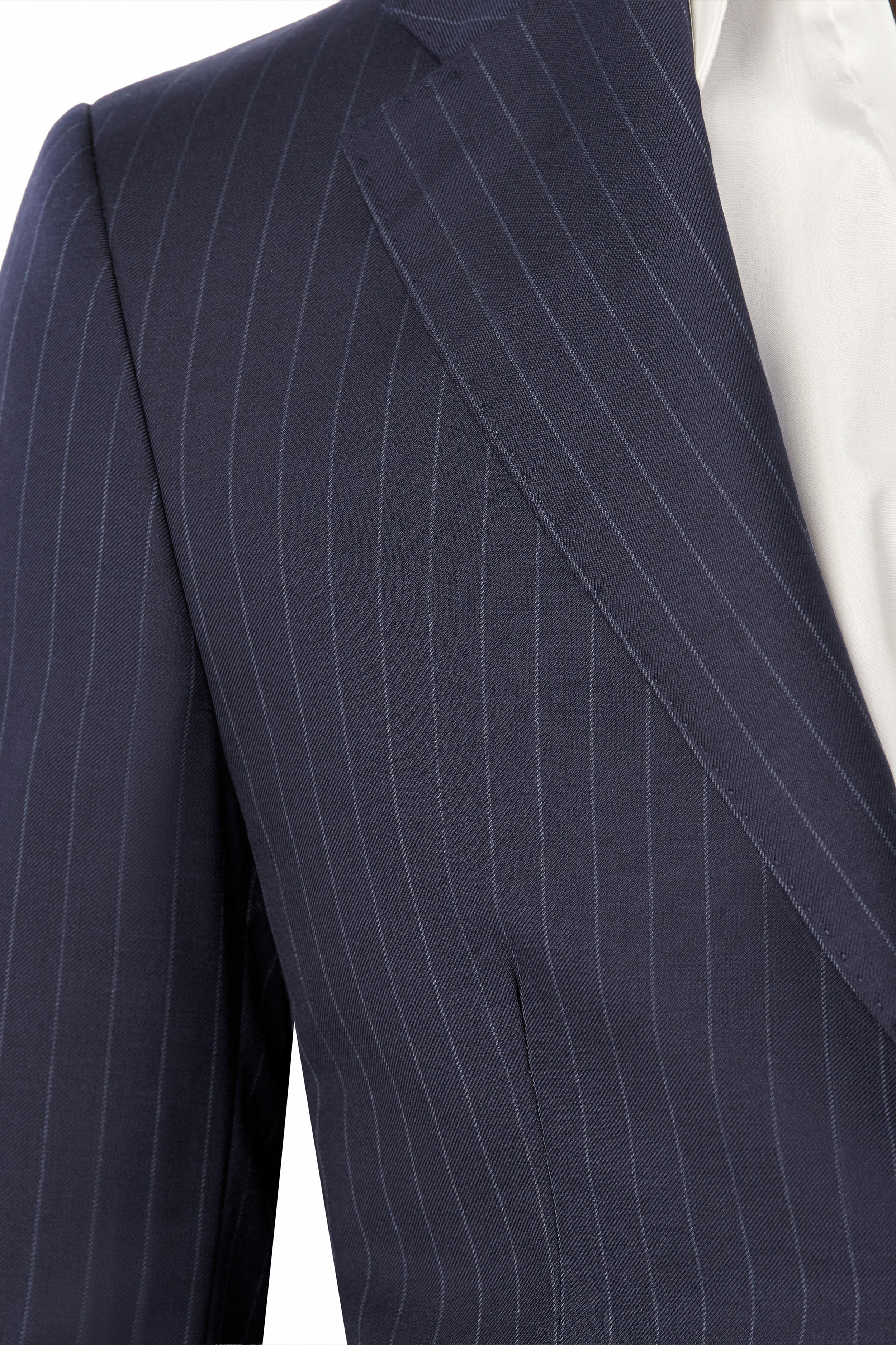 With its elegant navy pinstripe design, 100% Italian wool construction, 1/2 canvas lining, and impeccable Italian craftsmanship, this 2-button suit from The Heritage Collection is a symbol of enduring style and sophistication. The two-button jacket, notch lapel, and slim fit create a polished silhouette that commands attention. For the modern gentleman ready to elevate his presence, this Classic Navy Pinstripe suit is the ultimate expression of refined elegance.
