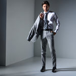 With its meticulous contemporary tailoring, stretch fabrics that retain shape, and versatile light gray color, this two-button suit epitomizes timeless sophistication. A refined essential designed to instill confidence and project authority for today's successful modern gentleman. Whether you wear it to work, a wedding, or a formal event, this impeccably crafted suit will ensure you look refined and commanding.