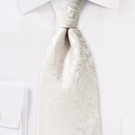 Introducing our Ivory Floral Paisley Necktie, an exquisite accessory that radiates timeless elegance. The soft and refined ivory tones combined with intricate floral paisley patterns create a captivating and sophisticated look. Whether you're shopping for men's suits or preparing for a wedding, this necktie adds a touch of refined luxury to your ensemble. Pair it with a sleek tuxedo to exude confidence and style. The Ivory Floral Paisley Necktie is a statement piece that effortlessly elevates any outfit, reflecting your impeccable taste and attention to detail. Embrace the understated beauty of ivory and make a lasting impression with this stunning necktie.