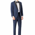 Indulge in the pinnacle of fashion excellence with this Medium Blue Diamond Texture Shawl Lapel Tuxedo. This stunning piece is a celebration of classic elegance and modern sophistication. Also, the suit is skillfully tailored to perfection for the gentleman who commands attention and respects tradition.