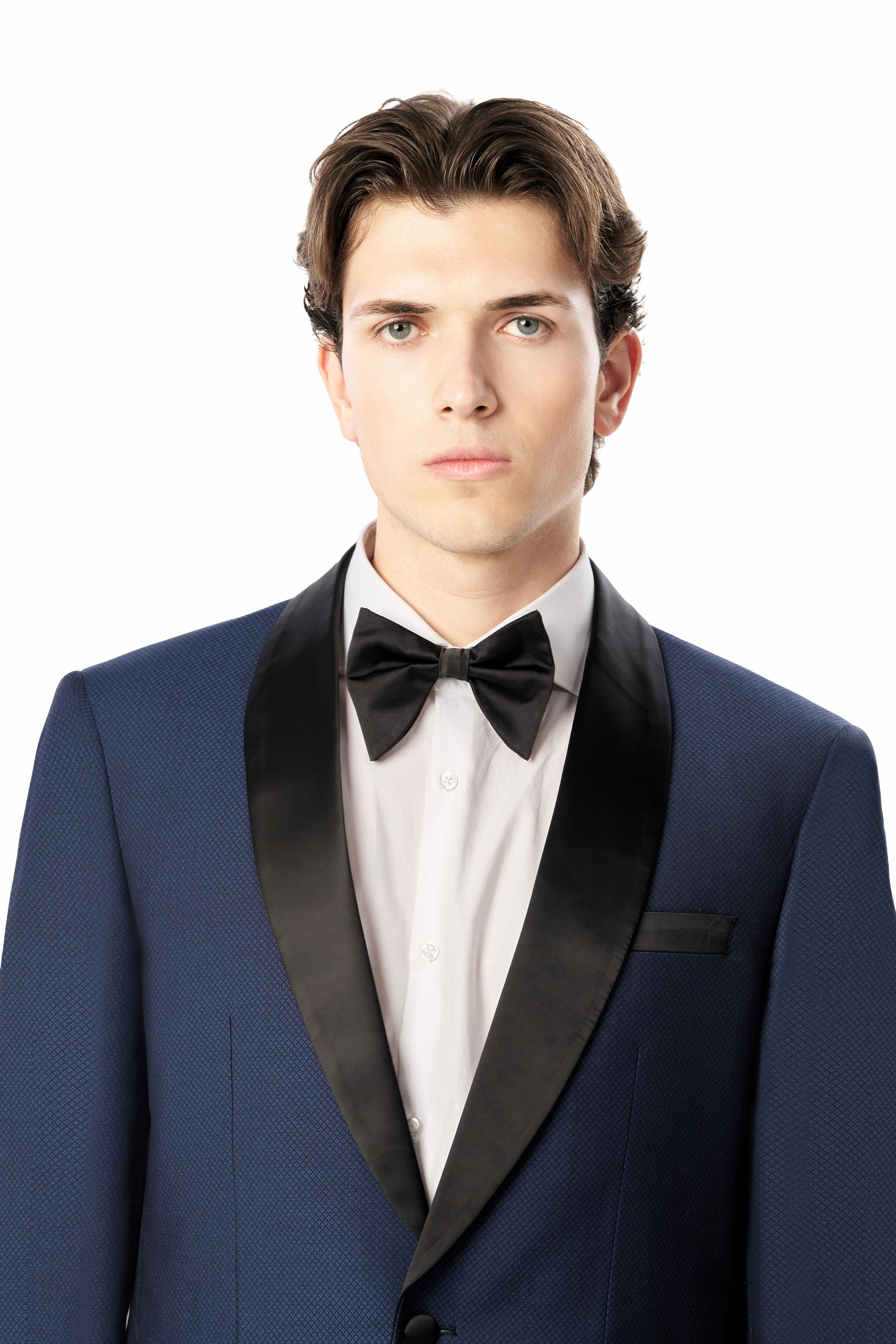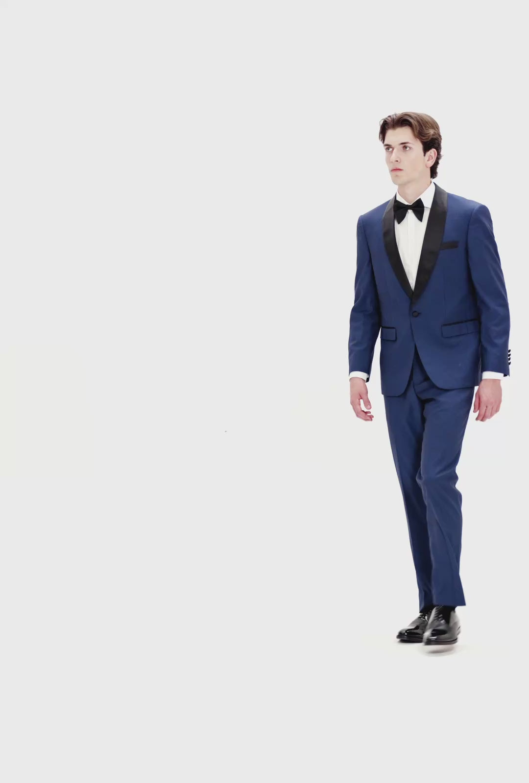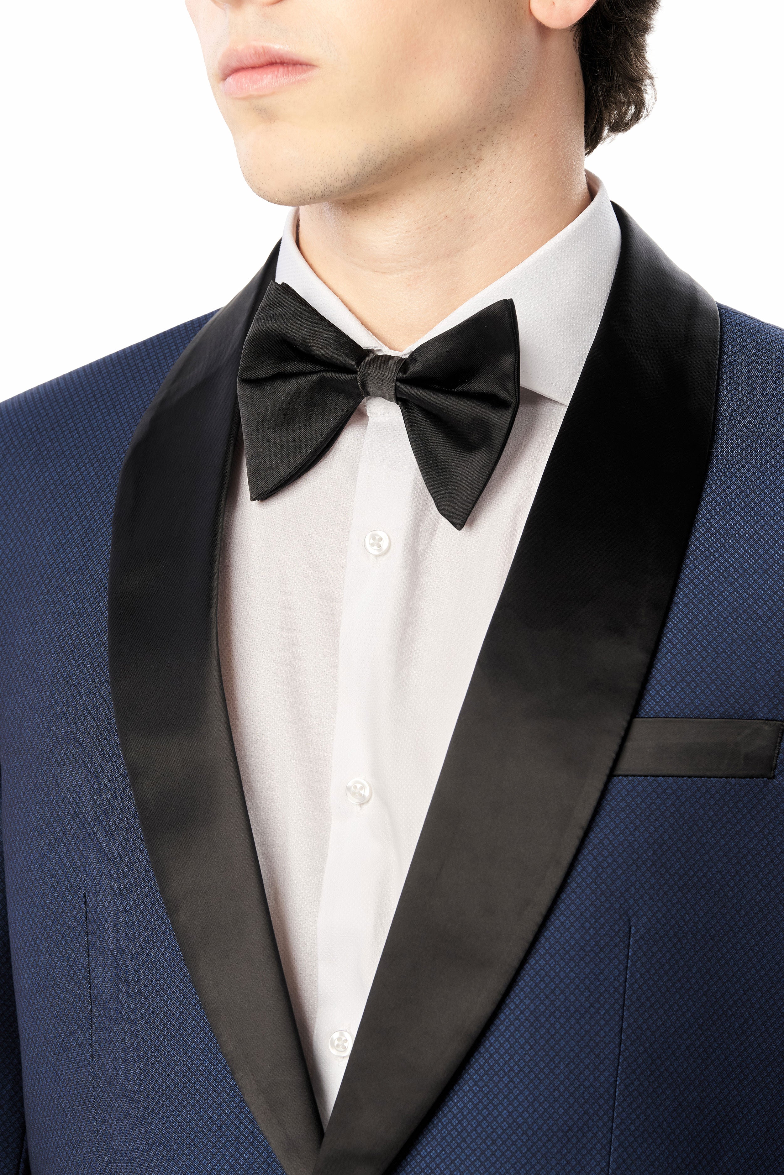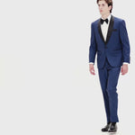 Woven from a premium wool blend, the tuxedo boasts a distinctive diamond texture that adds more dimension to the medium blue fabric. This subtle yet striking pattern plays with light and shadow. Thereby, offering a visual feast that is both understated and captivating. Also, the remarkable blue diamond shade evokes a sense of depth and sophistication. This color is versatile enough to enhance the suit's overall appeal and complement different occasions and pairings.
