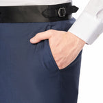 What's more, this tuxedo jacket is a work of art. It features a luxurious shawl lapel that gracefully frames the neck and a single-button closure that cinches the waist. Thus, creating a sleek and streamlined silhouette. The jacket's jetted pockets and four-button cuffs are meticulously crafted, adding a touch of classic refinement. The trousers are equally impressive, with a flat-front design and an adjustable waistband for an impeccable fit.