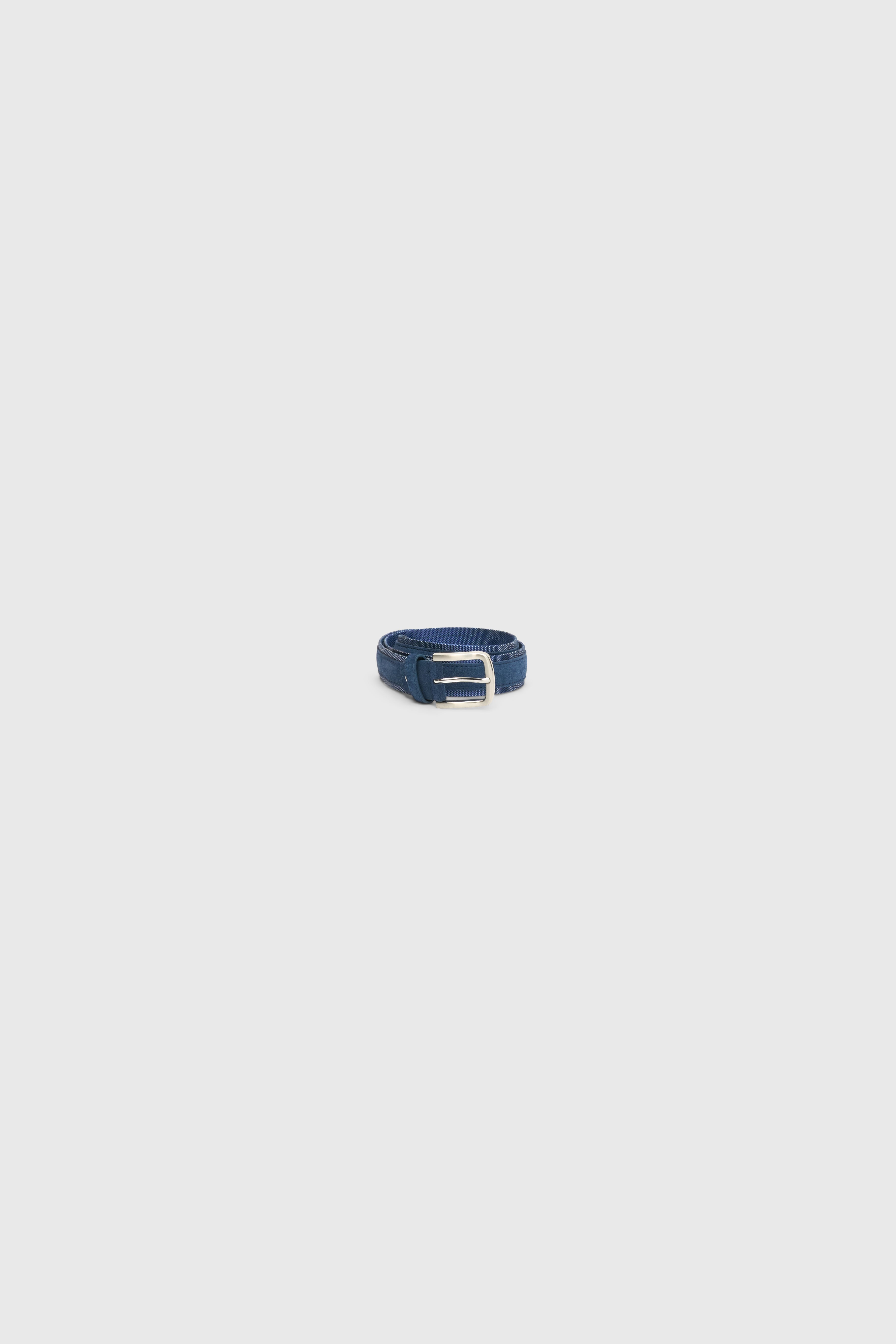 Add depth to your look with the Navy Suede & Fabric Belt—rich suede in deep navy paired with breathable woven fabric sides. Water-resistant suede center, antique brass buckle, and subtle texture for quiet confidence. Perfect for tailored looks or weekend polish. Refined. Versatile. Understated.