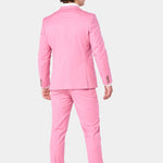 Express your sophisticated style with this elegant salmon pink 2-button suit, expertly tailored for weddings and formal events. This suit is designed for today's fashionable gentleman, featuring a fitted jacket with a classic notch lapel collar and a two-button closure for a stylish look. The suit also comes with matching flat-front pants for a sleek and sophisticated silhouette.