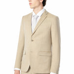 Equally fitting for the office, weddings, or galas, this tan suit complements any wardrobe. For meetings, pair it with a white shirt, solid tie, and oxfords for a polished look. For a more casual and relaxed look, you can wear the jacket and trousers separately or skip the tie and wear a colorful or patterned shirt. The two fits this suit is available in will enhance your look regardless of build type, and the tan color makes a simple statement that will help you look sharp and stylish.