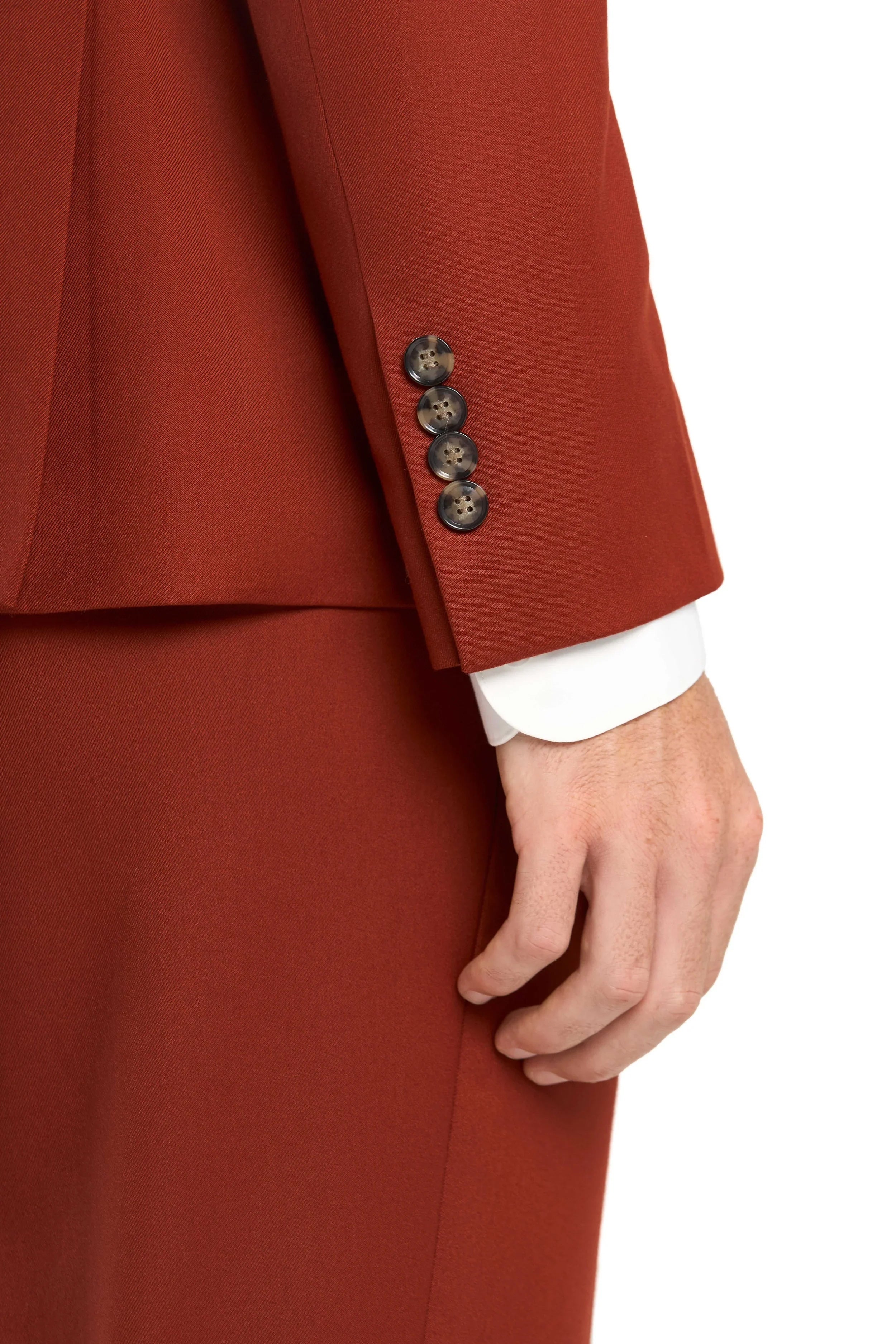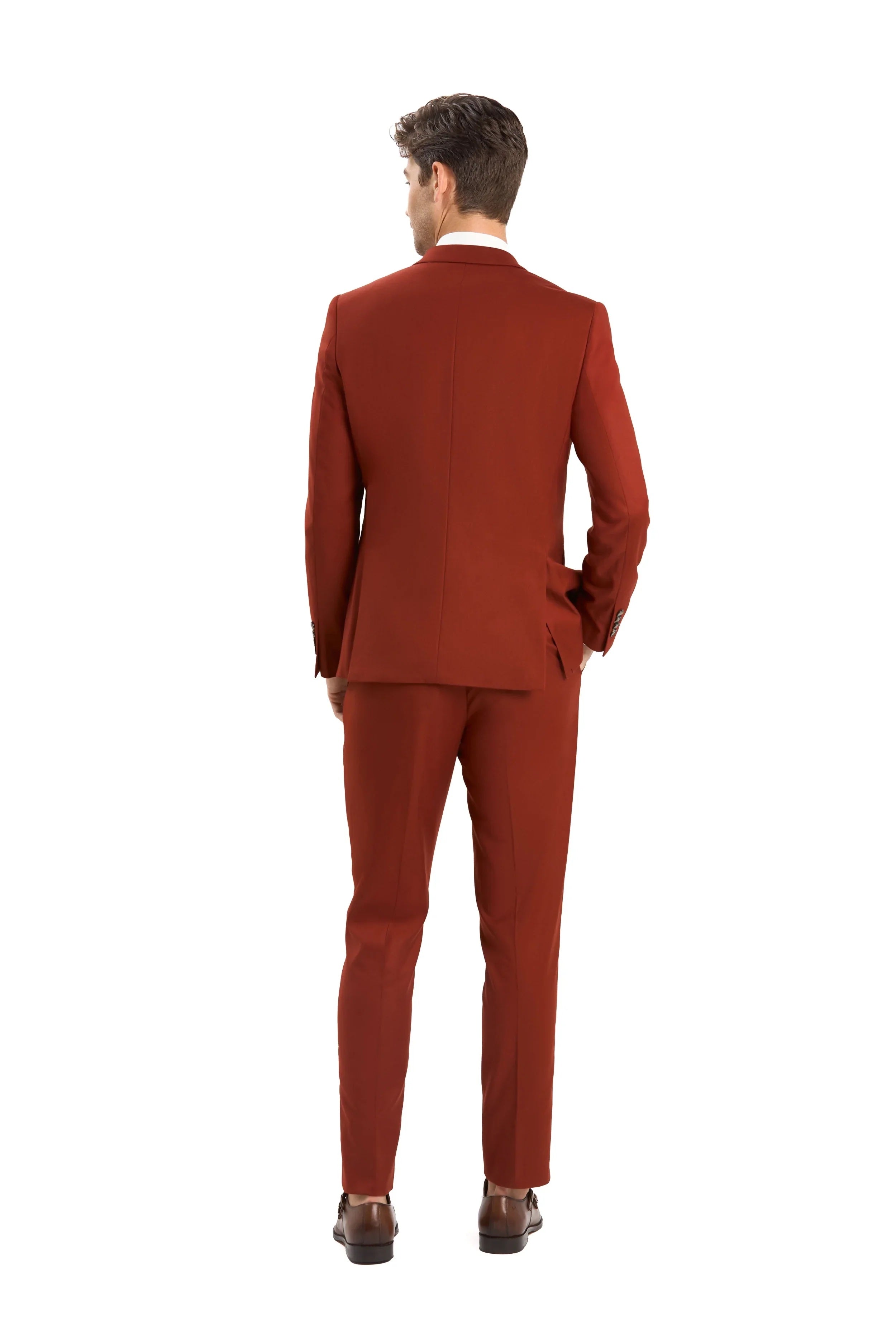 Invest in timeless elegance with the terracotta two-button suit. With its elegant terracotta color, fitted jacket, impeccable slim fit, classic notch lapel collar, and two-button closure, this suit is a must-have for today's fashionable gentleman. Embrace the warmth of the terracotta two-button suit today and always look stunning, regardless of the season or occasion.